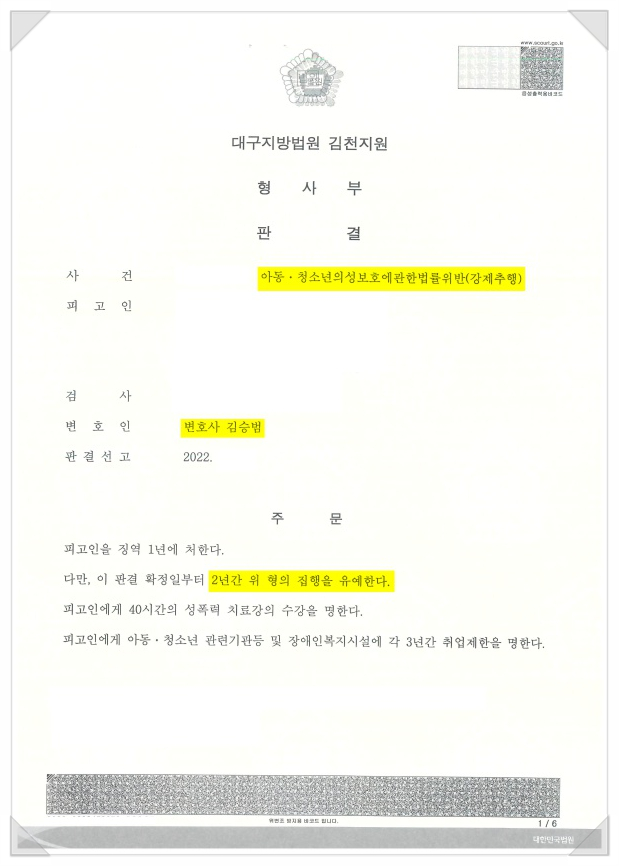 의뢰인같은 경우 피해자와 직접 연락을 취할 수도 없는 상황임으로 변호인 선임은 필수적 요소입니다. 피해자와의 원만한 합의 끝에 구속되어있던 의뢰인은 석방되었으며, 앞서 말했듯이 피해자가 청소년인 성추행 사건의 경우 반드시 피해자와 합의를 보셔야 실형을 면할 수 있습니다.